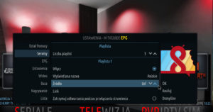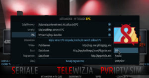 A teraz czas na konfigurację IPTV – jest to “technika umożliwiająca przesyłanie sygnału telewizyjnego w sieciach szerokopasmowych opartych na protokole IP” (cyt. Wikipedia). Aby ustawić to ustrojstwo w KODI najpierw ustawiamy sobie EPG (elektroniczny przewodnik po programach – taka telegazeta w lepszym wydaniu)
