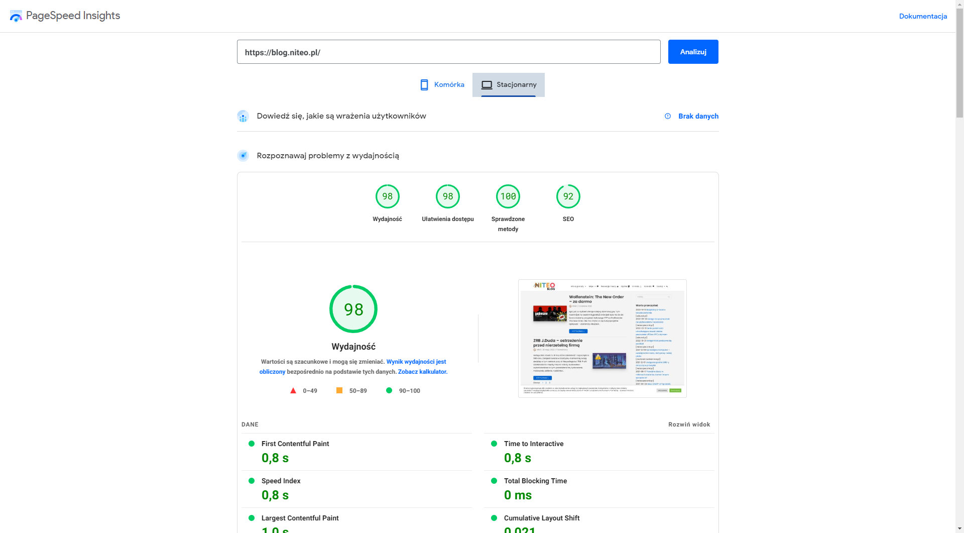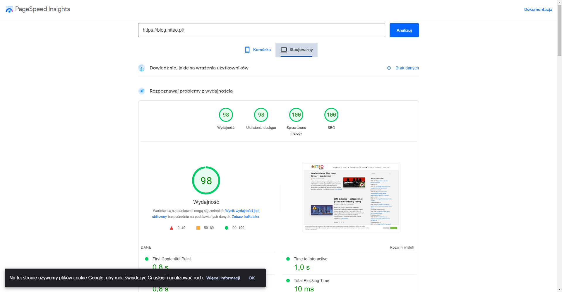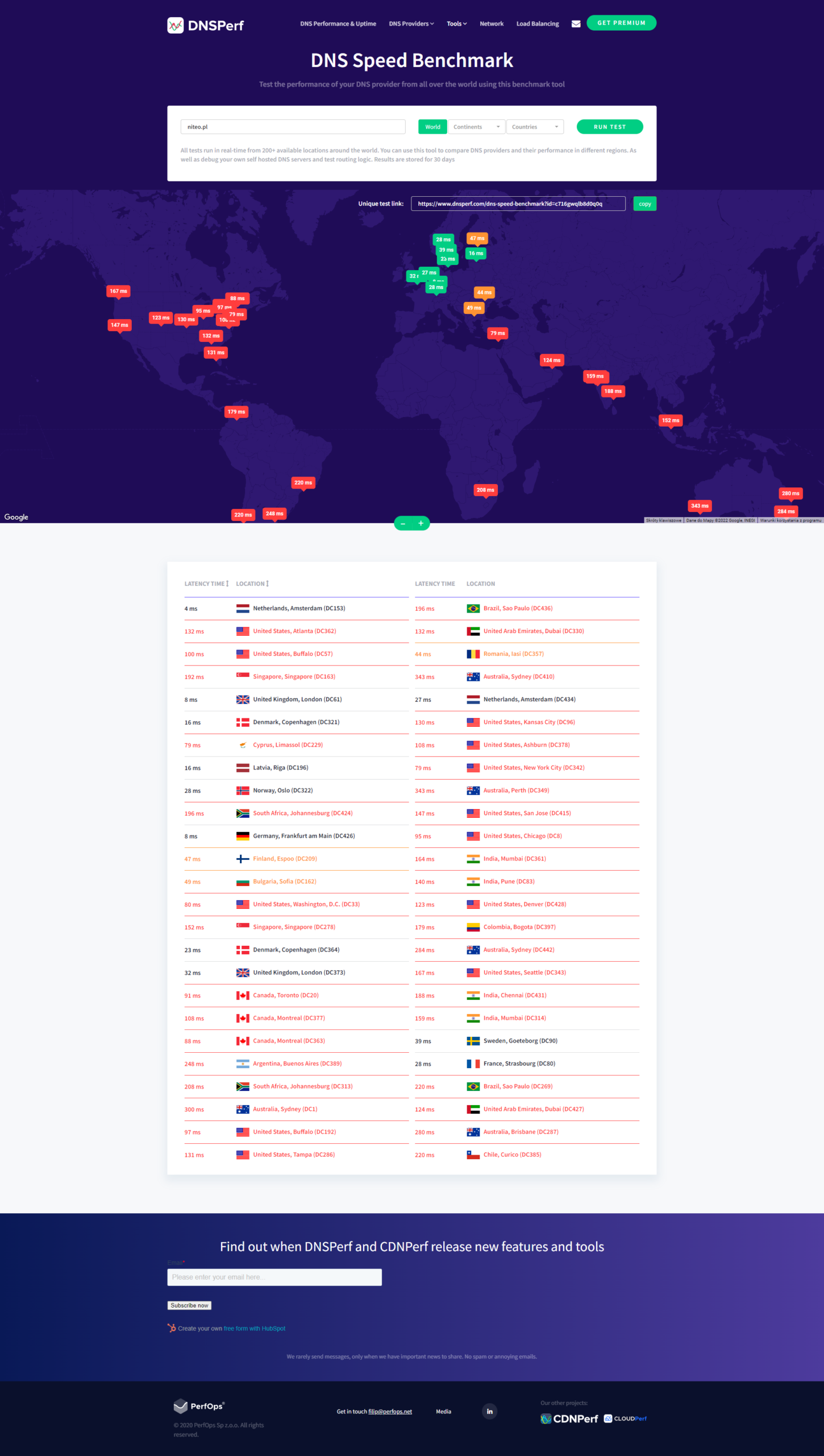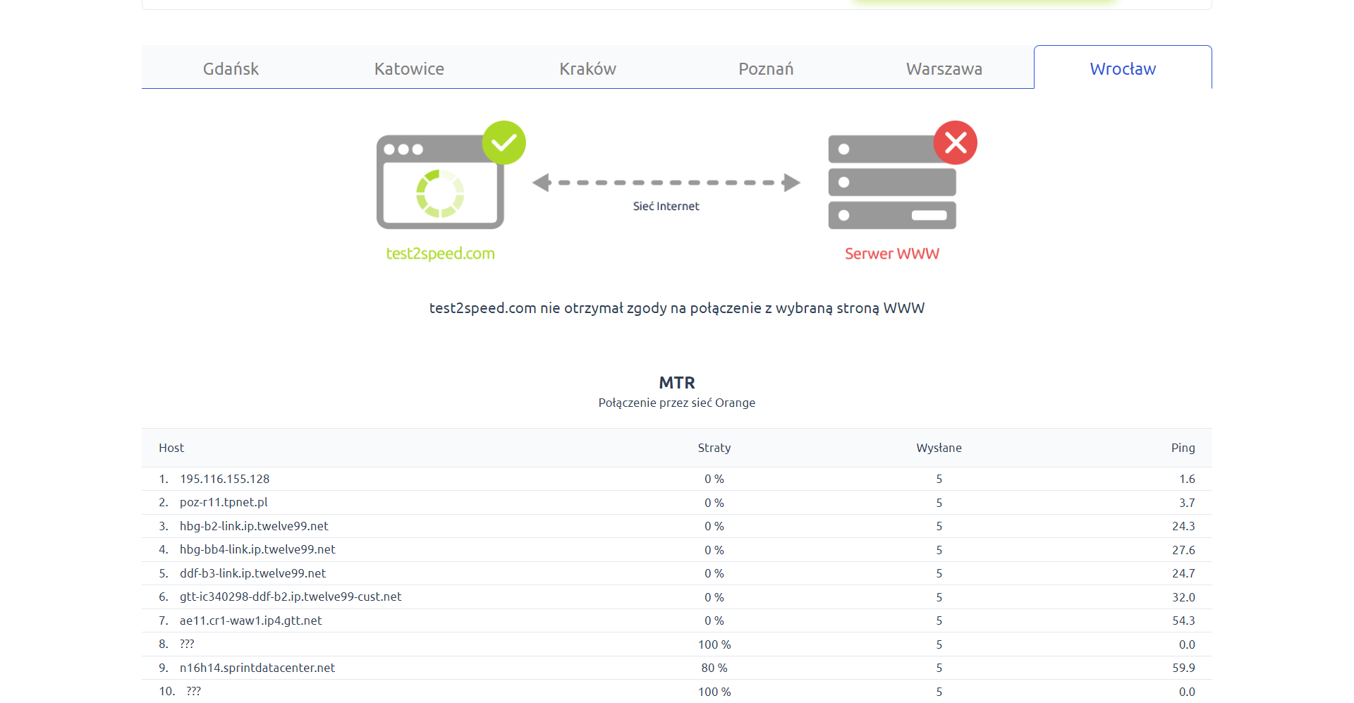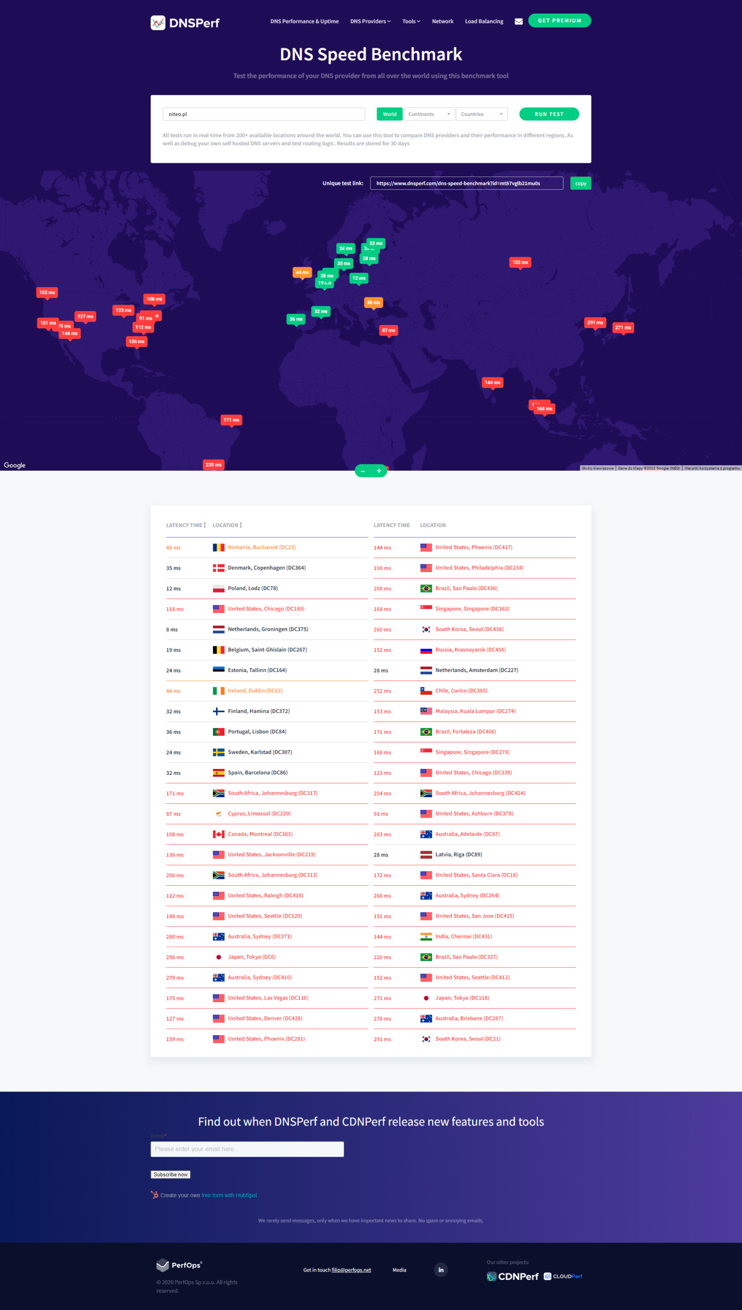 Poniżej kilka screenów z witryn testujących szybkość działania stron, dns i łączenia z serwerami.