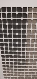 Poniżej bardzo dobrze widać ile kurzu udało się wyłapać oczyszczaczowi przez 12 dni (po lewej część już odkurzona)