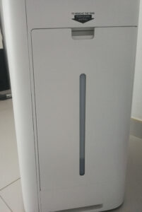 Powietrze po oczyszczaniu jest przyjemniejsze – dzięki wilgoci i pochłonięciu nieprzyjemnych zapachów, a także ma mniej kurz – to dzięki technologii plasmacluster i też nawilżaczowi. Eliminację kurzu można też zauważyć na meblach czy innych przedmiotach na półkach – gromadzi się go zdecydowanie mniej w takim samym odstępie czasu. Wcześniej kurze ścieraliśmy raz na tydzień / dwa. Teraz nierzadko i ponad miesiąc – sprzęt naprawdę robi robotę pomimo iż nie chodzi 24h.